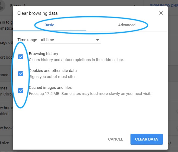 The browsing data from your computer has been cleared. Close this tab and continue to use Chrome.